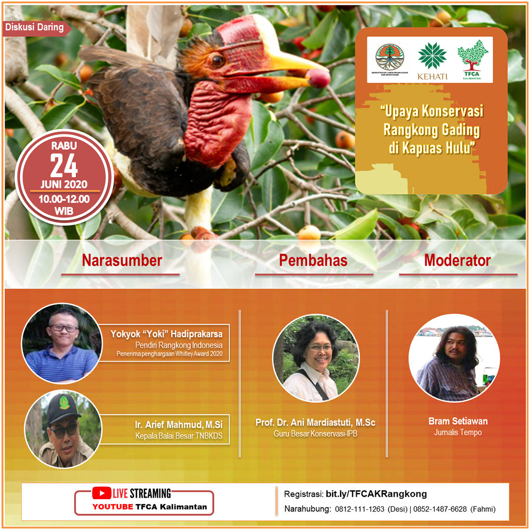 Pada diskusi daring bertajuk “Upaya Konservasi Rangkong Gading di Kapuas Hulu, yang diselenggarakan TFCA Kalimantan-KEHATI (Rabu 24 Juni 2020). Diskusi yang menghadirkan narasumber mulai dari peneliti, pemerintah dan akademisi ini cukup menarik perhatian publik. Hal ini terkait isu Rangkong Gading yang sampai saat ini masih menjadi topik hangat belakangan terakhir. Dari hasil survei yang dilakukan Yokyok “Yoki” Hadiprakasa, pendiri Lembaga Rangkong Indonesia menunjukan perburuan rangkong khususnya rangkong gading ini masih marak terjadi di Kapuas Hulu. Perburuan terjadi akibat pergeseran nilai budaya dikalanga masayarakat setempat, arti penting perlindungan rangkong gading masih belum banyak dikenal masyarakat umum.